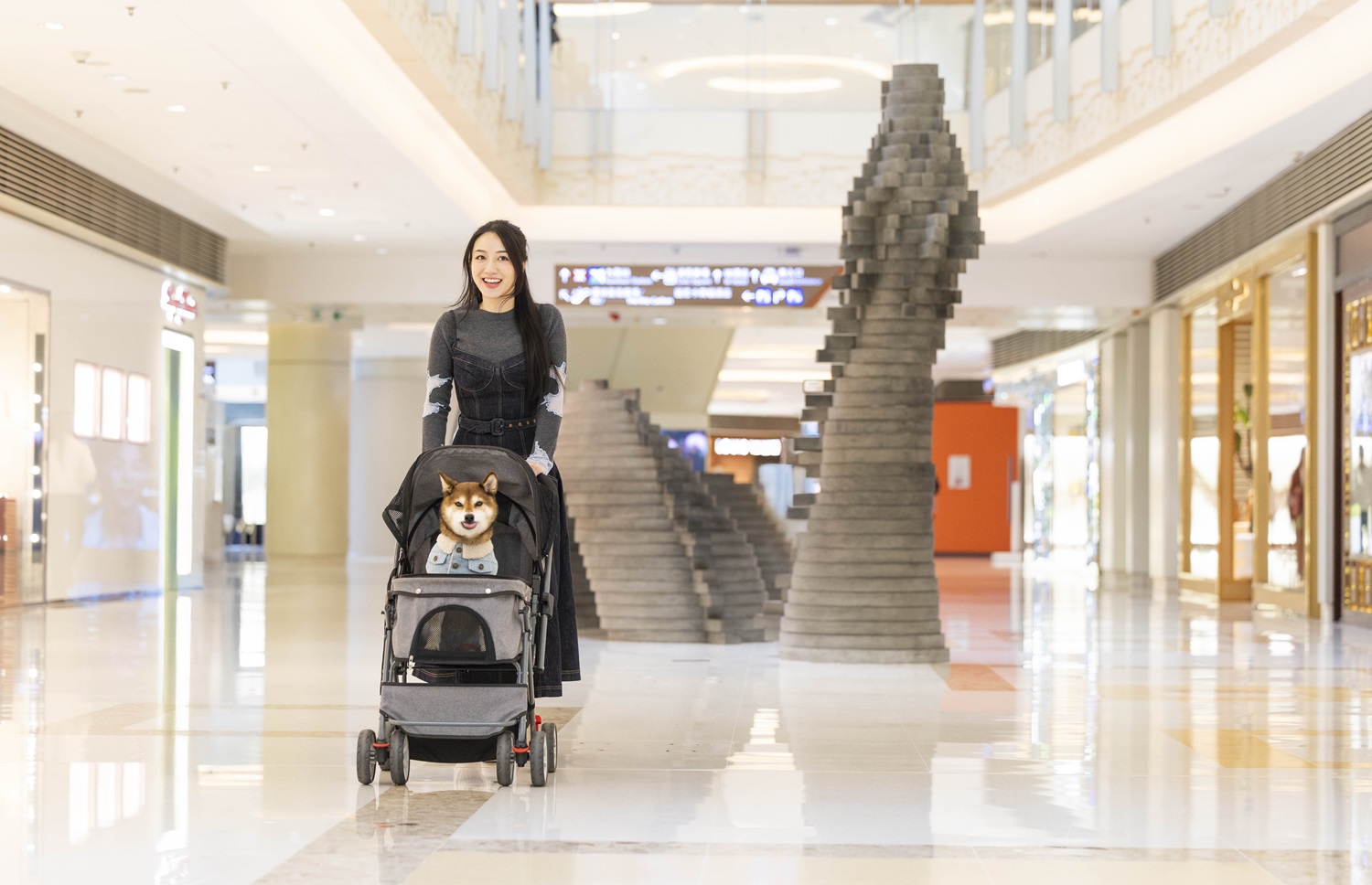 Pet stroller lending services are available at our Concierge counter. For more details, please contact our staff at 1/F Fire zone Concierge counter at 2735 5234.