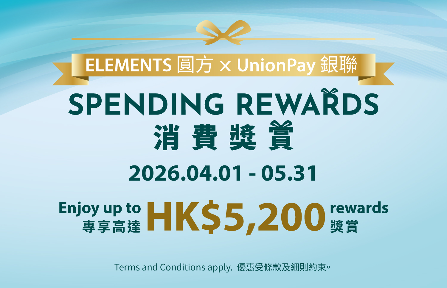 ELEMENTS 圓方及銀聯國際有權就各種參與是次消費獎賞的消費資格作最終決定。